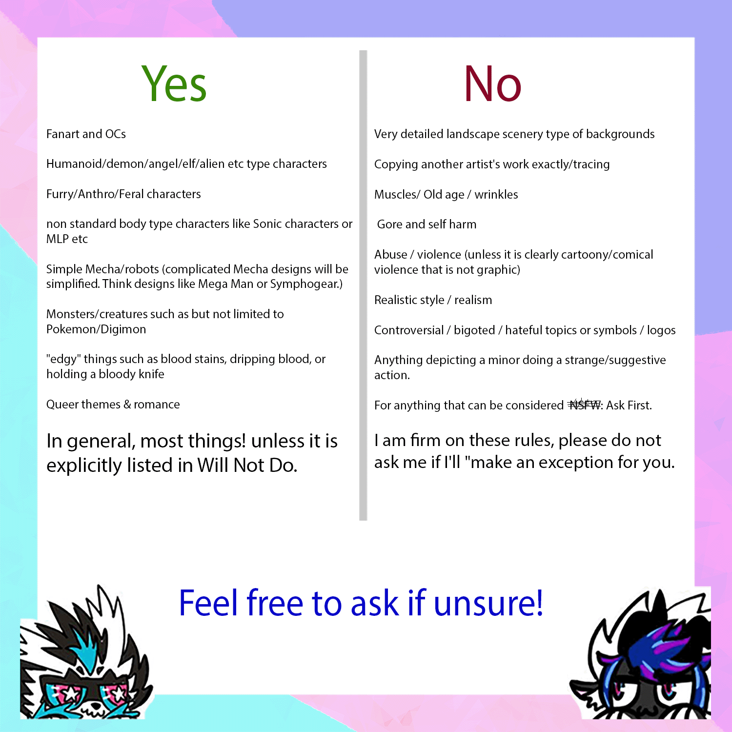 I am using my Ko-Fi to manage my Digital Art commissions. Please go there to view detailed information about prices and different commission types etc.